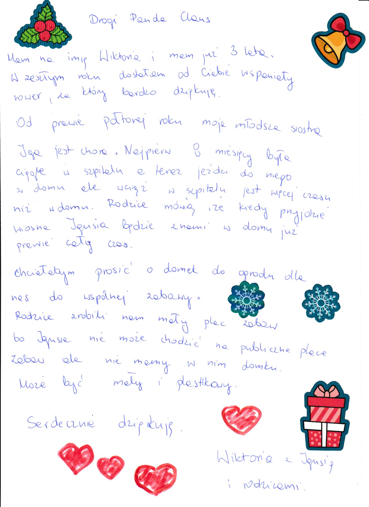 Od prawie półtorej roku nasza młodsza córka leczy się onkologicznie. A w domu jest starsza- choć niewiele- 3 i pól roczna Wiktoria. Staramy się aby jak najmniej odczuwała sytuację w jakie znalazła się nasza rodzina ale Wiktoria jest coraz starsza i coraz więcej rozumie. W zeszłym roku dostała rower a w tym roku zapytana o to jaki chce prezent powiedziała : " Do zabawy dla mnie i Igusi". Dziewczynki cieszą się każda chwilą wspólnej zabawy.