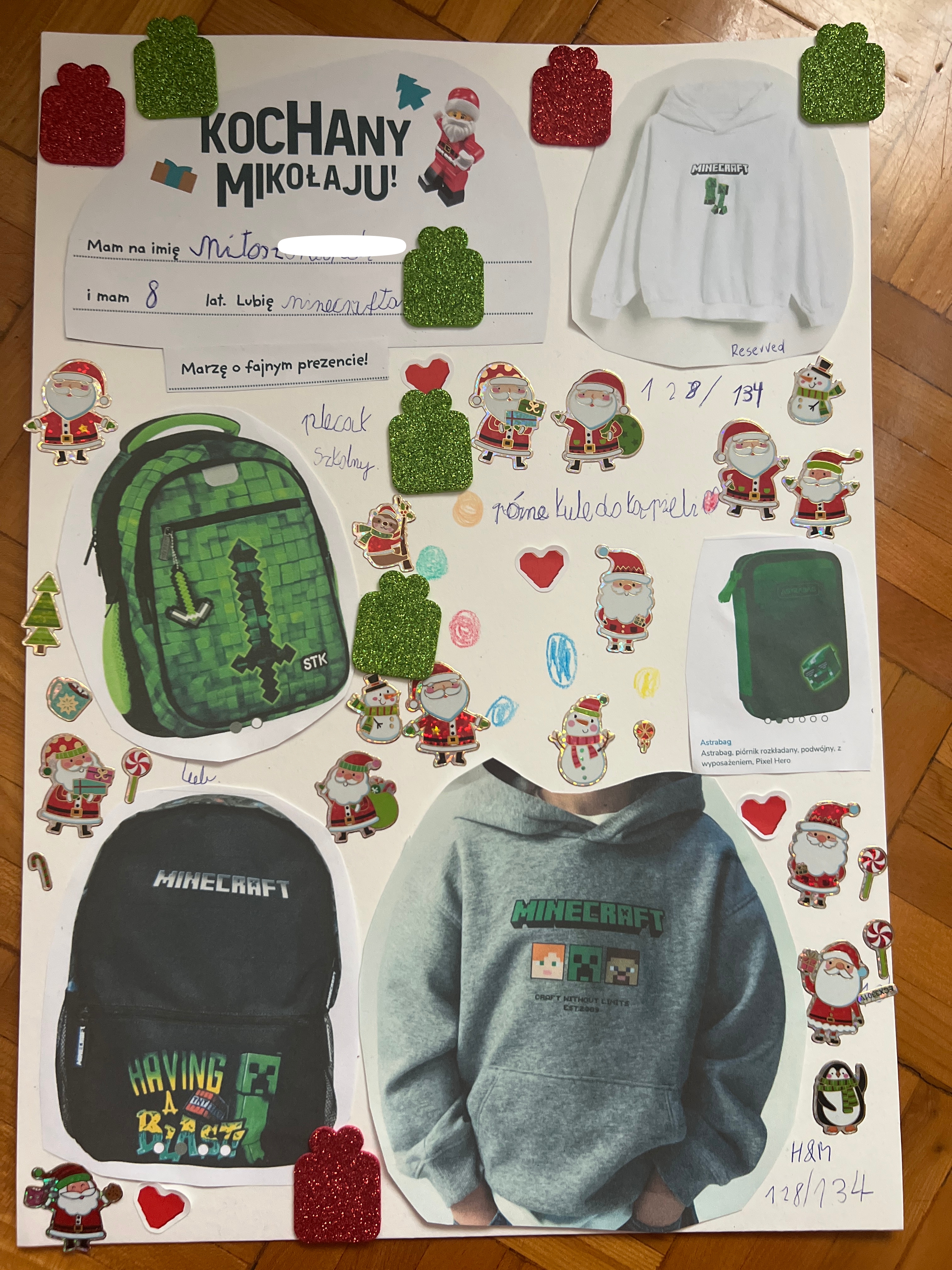 Mam na imię Miłosz Mam 8 lat W tym roku mój ukochany braciszek Maksiu odszedł do Nieba ..bardzo za nim tęsknię..lubię grać w Minecrafta dlatego marzę o prezentach z tym motywem