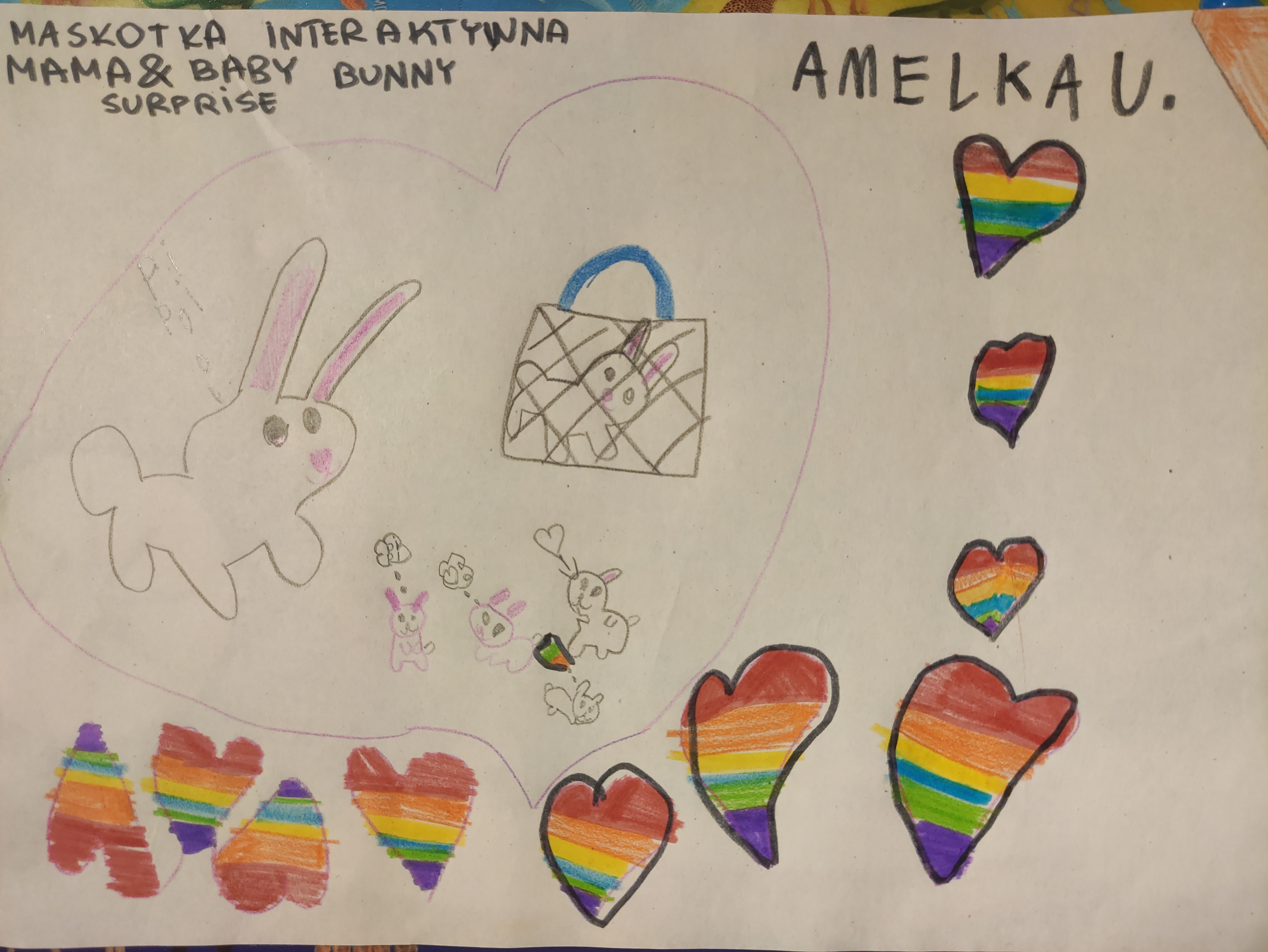 Amelka to młodsza siostrzyczka 10-letniego Jasia, który walczy z agresywnym nieoperacyjnym guzem mózgu DIPG. Oboje są ogromnie dzielni, ale Amelka bardzo wszystko przeżywa - jest wrażliwą dziewczynką, nie raz już płakała i była smutna, bo martwiła się o brata lub tęskniła do niego, gdy był w szpitalu ... W wakacje zobaczyła reklamę zabawki, którą przedstawiła na rysunku. Bardzo jej się spodobała, na pewno sprawiłaby jej wiele radości!