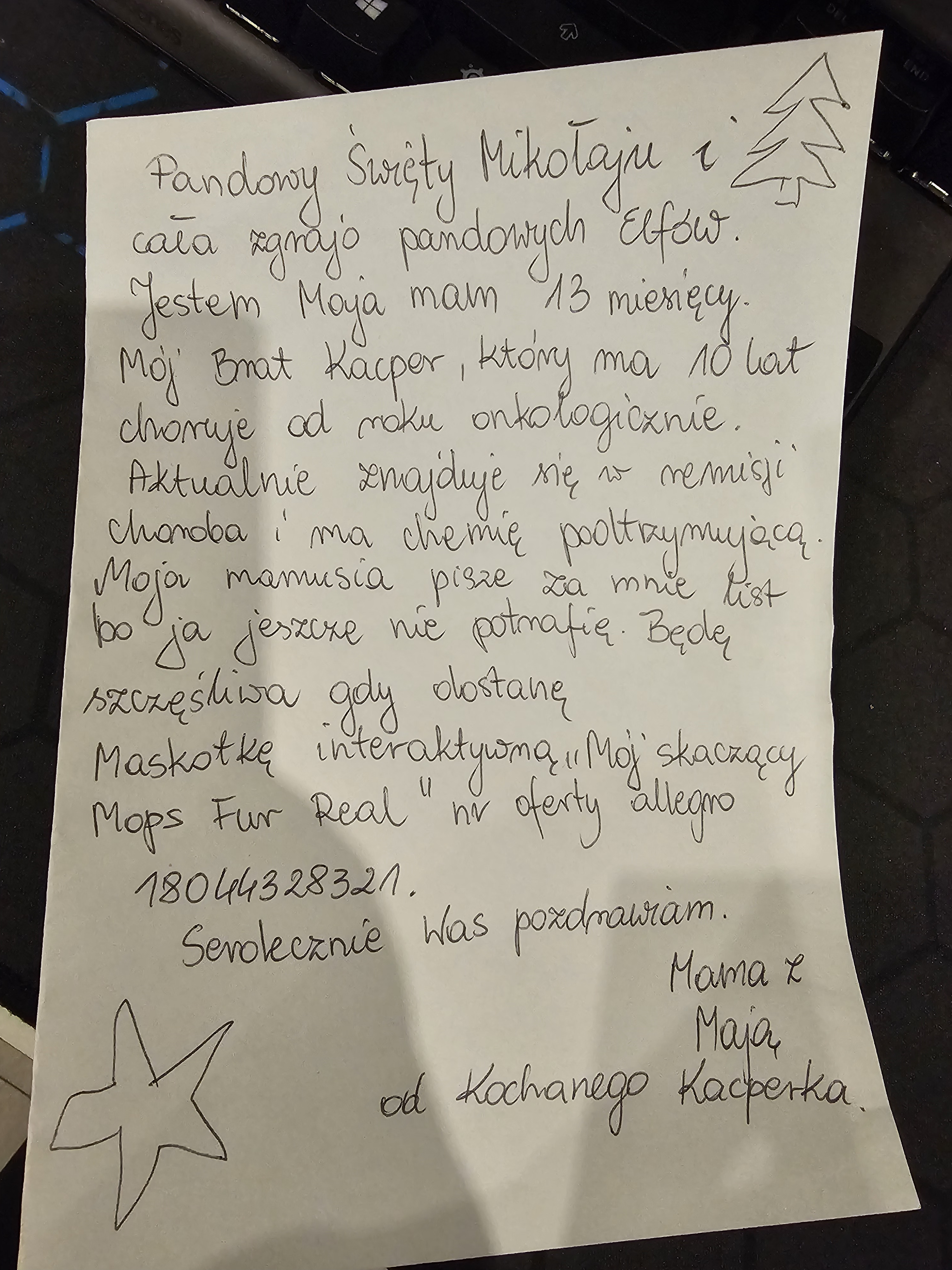 Moj braciszek Kacperek od roku walczy z choroba Meddulloblastoma i zespołem Li-fraumeni. Jest Mega dzielny. Walczy dzielnie i obecnie jest na podtrzyjacej chemii oraz w remisji . Cieszę się że mam tak cudowną rodzinę i dzielnych braci.