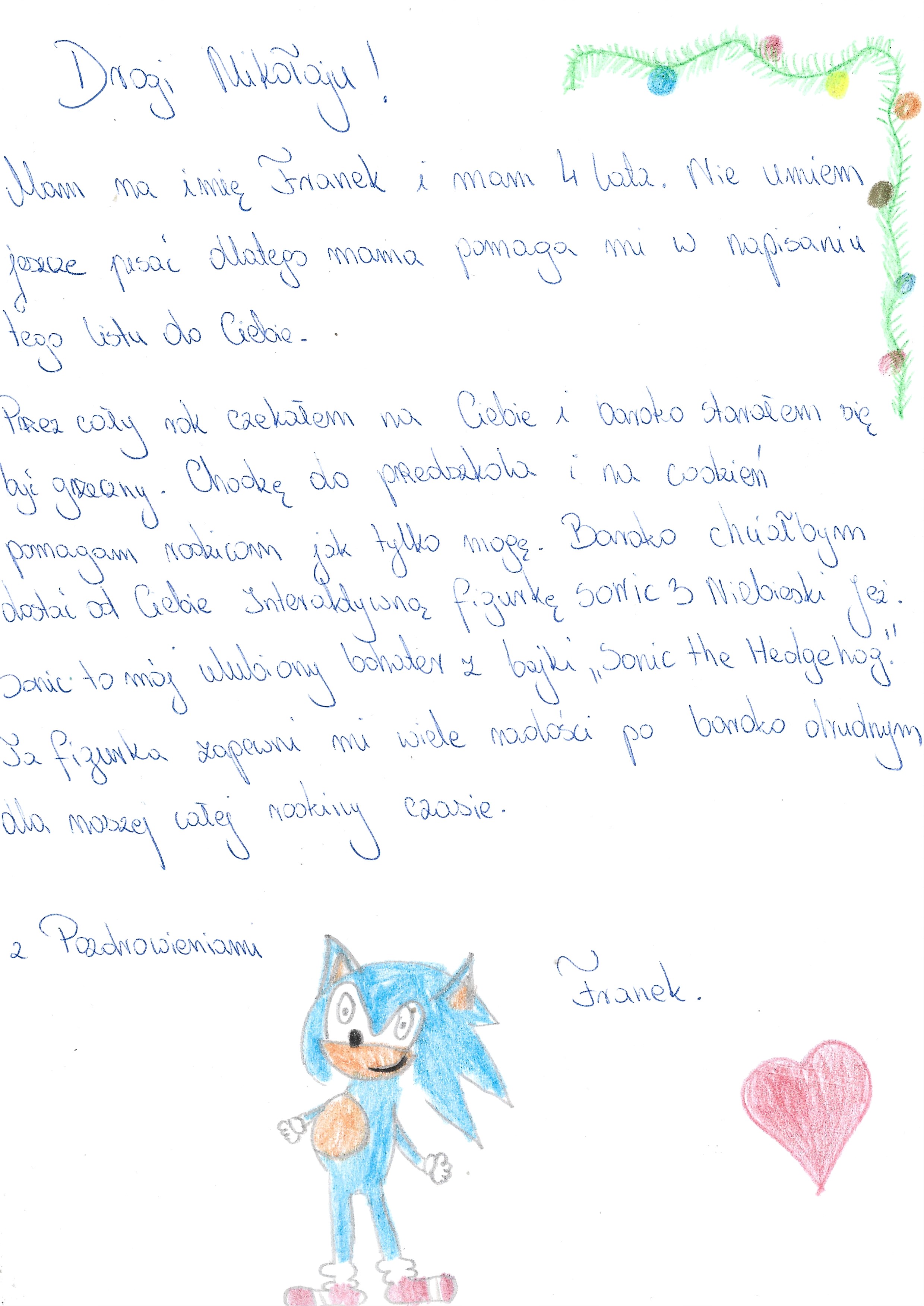 Kochany Święty Mikołaju ! Jesteśmy 5-cio osobową rodziną. Dwoje dzieci chorują na ultrarzadką chorobę genetyczną, która powoli odbiera im sprawność. Jest to choroba nieuleczalna, neurodegredacyjna. Nasze życie opiera się na ciągłych wyjazdach do specjalistów, wizytach w szpitalach, wyjazdy na turnusy rehabilitacyjne, codzienna rehabilitacja i wielka walka o zatrzymanie sprawności dzieci. Na domiar złego u córki zdiagnozowano nowotwór złośliwy. Była ciężka walka, chemioterapia, która wyniszczyła jej organizm, przez cały rok byliśmy w szpitalu, nie było szans na wyjście do domu pomiedzy cyklami chemii bo córka miała bardzo duże spadki wyników krwi, była słaba. Powikłania po chemioterapii były bardzo ciężkie (zapalenie płuc, sepsa) Córka leżała na OIOMie w stanie bardzo ciężkim. Obecnie jesteśmy po skończonym leczeniu, jeżdzimy na kontrole co dwa tygodnie.