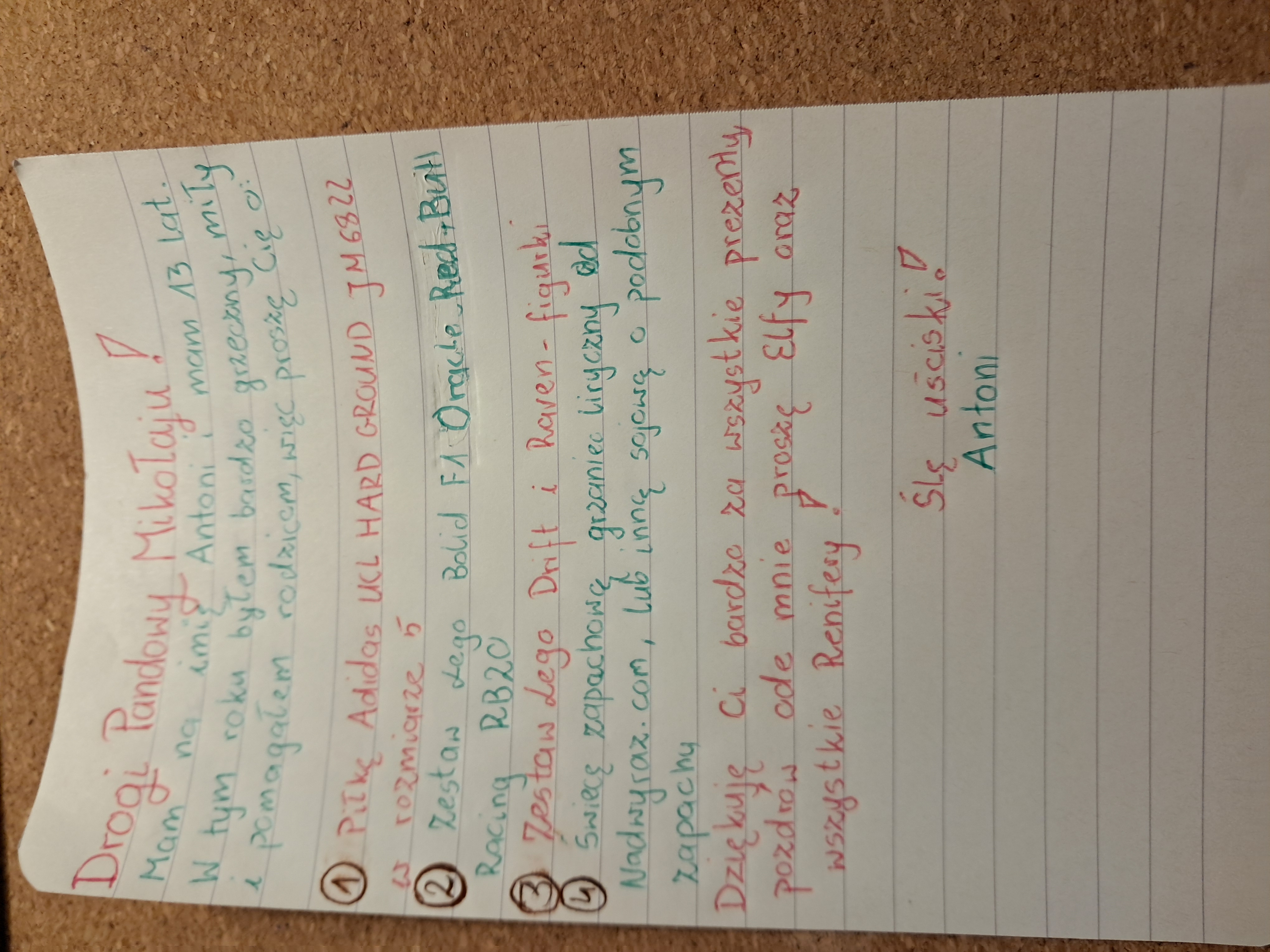 1. Piłka Adidas UCL HARD GROUND JM6822 rozmiar 5 2. Zestaw Lego Bolid F1 Oracle Red Bull Racing RB20 3. Zestaw Lego Drift i Raven - figurki 4. Świeca sojowa zapachowa grzaniec liryczny od nadwyraz.com lub inna o dowolnym, ładnym zapachu 😊