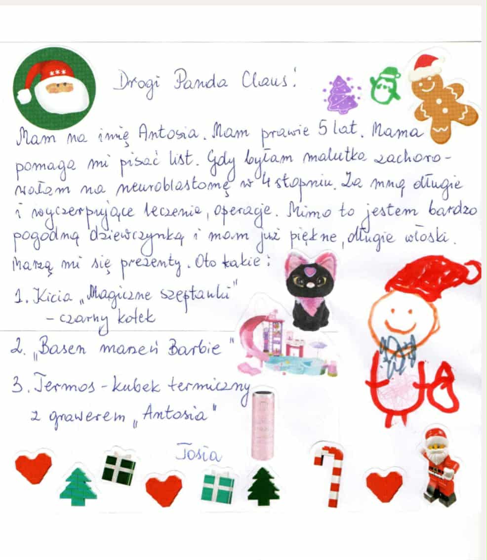 U Antosi w 3 miesiącu życia zdiagnozowono nowotwór złośliwy neuroblastoma w 4 stopniu. Guz w miednicy mniejszej z przerzutami do wątroby, szpiku kostnego, kości klinowej w głowie, prawego oczodołu. Przeszła intensywne leczenie. Ma również rzadką chorobę genetyczną, na domiar wszystkiego ma wrośnięty cewnik naczyniowy w żyle centralnej, którego usuniecie wiąże się z rozcięciem klatki piersiowej. Badania rezonansu wykazują maleńkie zmiany na wątrobie. Na 18-20 listopad zaplanowano nam badania kontrolne w Przylądku Nadziei. U siostry Tosi badanie usg wykazało guza na jajniku , w grudniu 2024 roku miala operacje. Sama wychowuje dziewczynki. Prezenty sprawią im wielką radość.