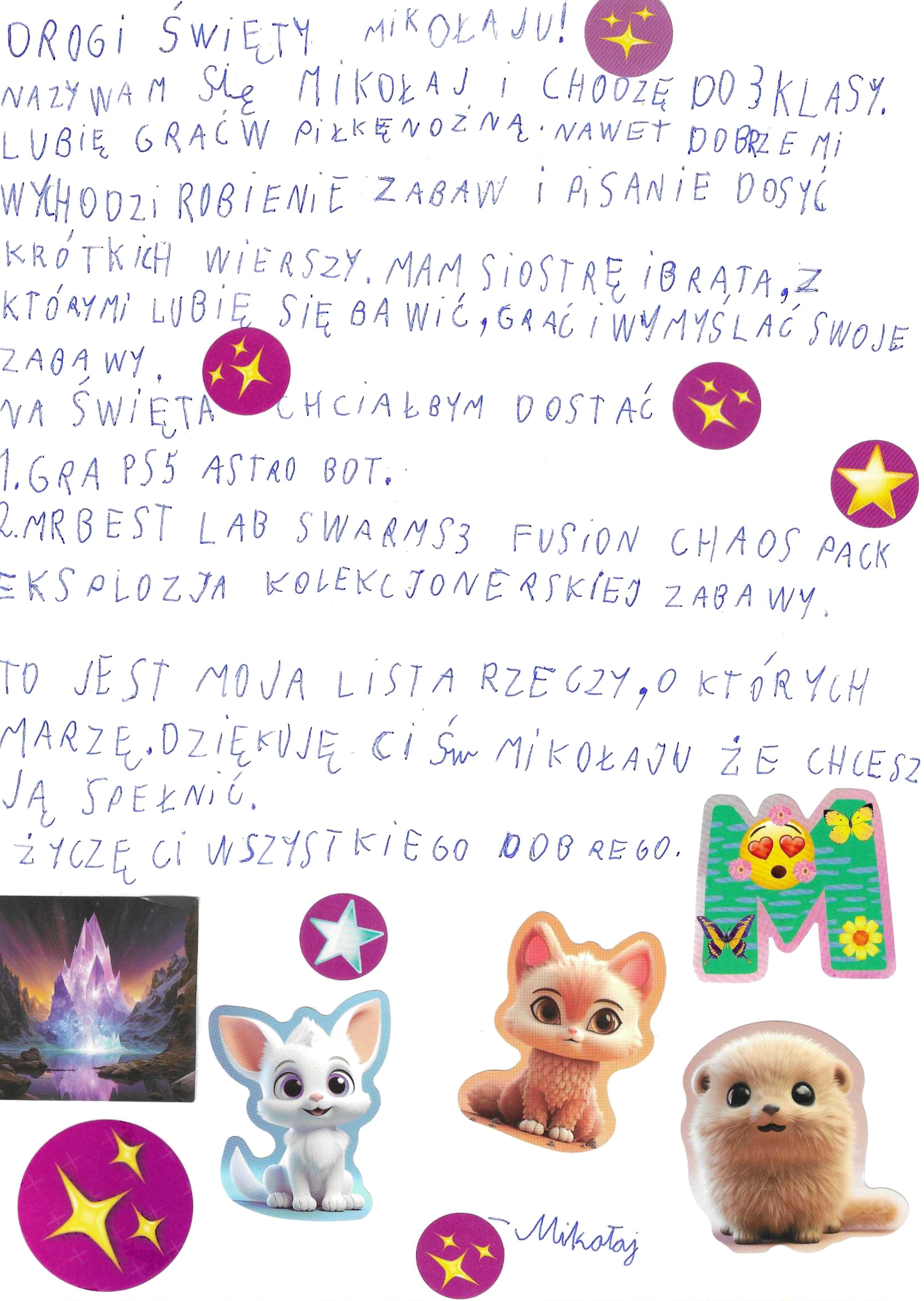 Siostra Mikołaja, 5-letnia Hania, jest w trakcie chemioterapii, w związku ze zdiagnozowaną ostrą białaczką limfoblastyczną. Przez chorobę, od ponad roku, Mikołaj jest jedyny dzieckiem, z którym Hania może się spotykać i bawić. Stał się jej najlepszym przyjacielem. W cięższych chwilach terapii razem ze starszym bratem służył jej wsparciem poprzez wspólną zabawę.