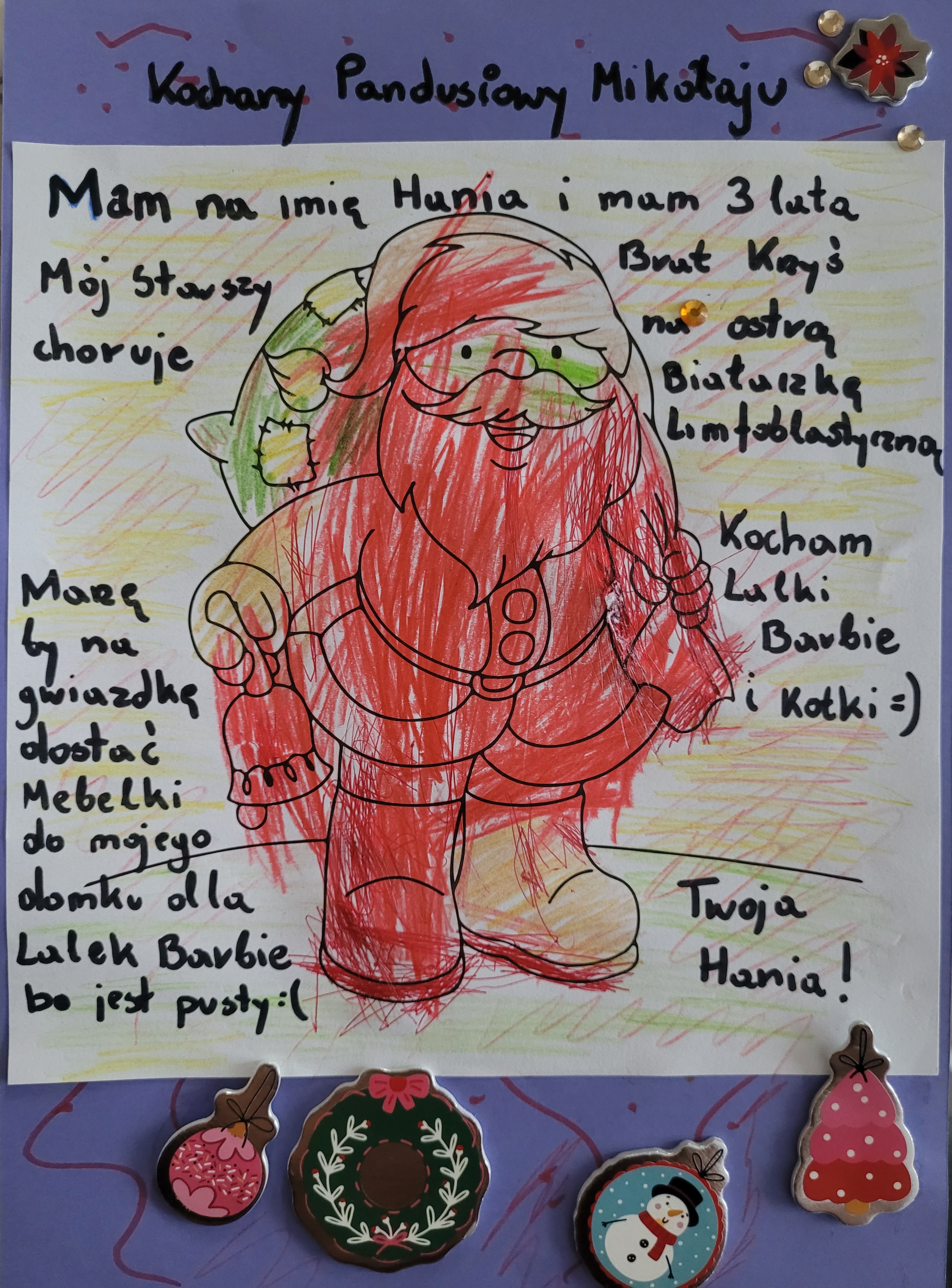 Hanusia jest naszym drugim dzieckiem. Kiedy miała trochę więcej niż roczek nas starszy syn zachorował na ostrą Białaczkę limfoblastyczną, walka o jego zdrowie będzie trwać ponad 2 lata, niestety w trakcie leczenia onkologicznego stwierdzono u niego również ADHD i autyzm atypowy. Dużo czasu spędzamy ze starszym Synem w szpitalach i w poradniach więc staramy się wynagrodzić to jakoś młodszej Hanusi jak tylko możemy.