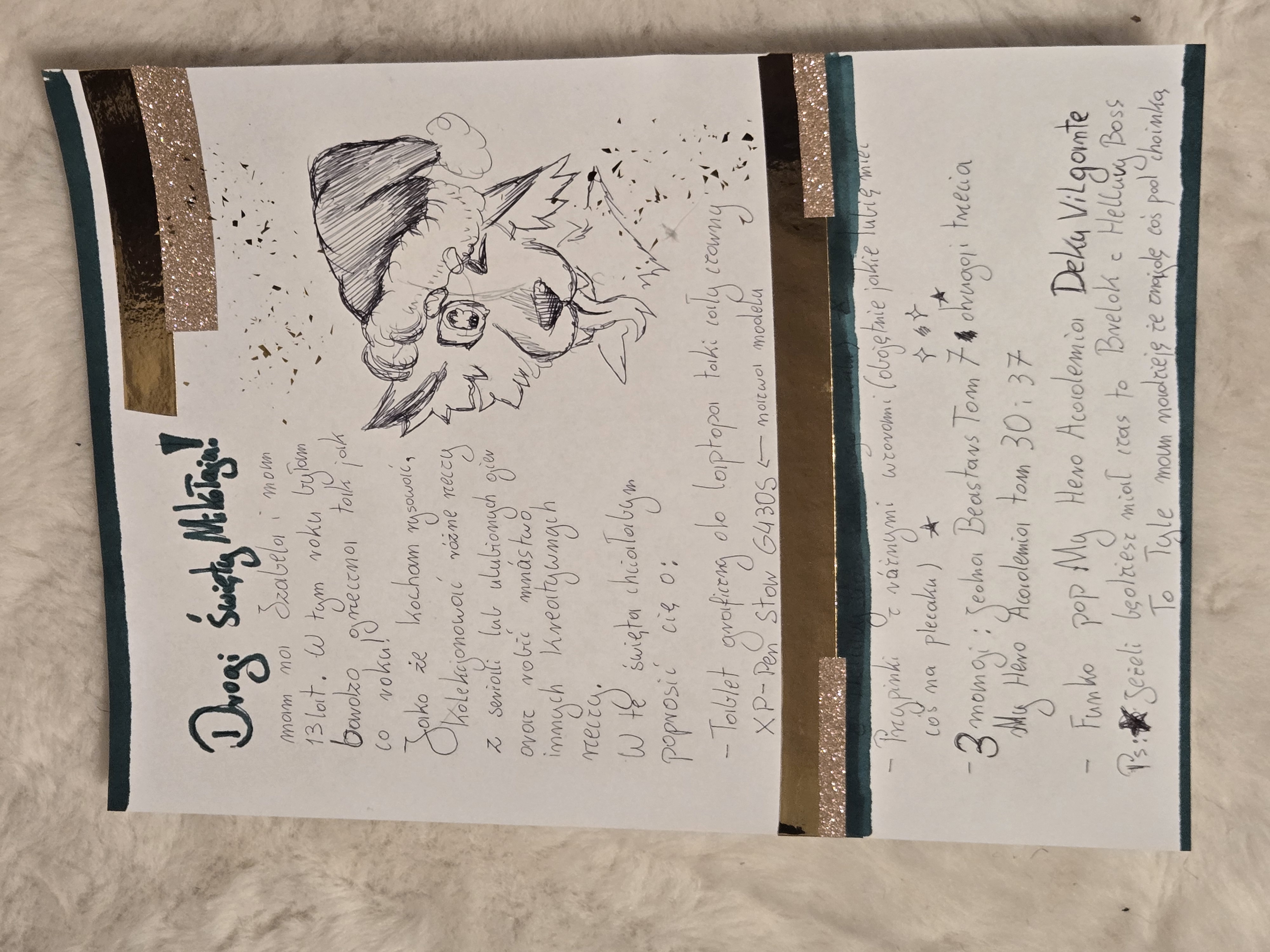 Mam na imię Izabela, mój brat Maksymilian choruje na neuroblastomę. Jest to bardzo częsty nowotwór złośliwy u dzieci. W tym roku miał już kolejną operację usunięcia masy z kręgosłupa, ponieważ guz zaczął rosnąć i uciskać na rdzeń kręgowy. Ze względu na duże koszty związane z leczeniem mojego brata, nie możemy pozwolić sobie na bardziej kosztowne rzeczy, dlatego proszę o te prezenty. Dziękuję. Izabelka