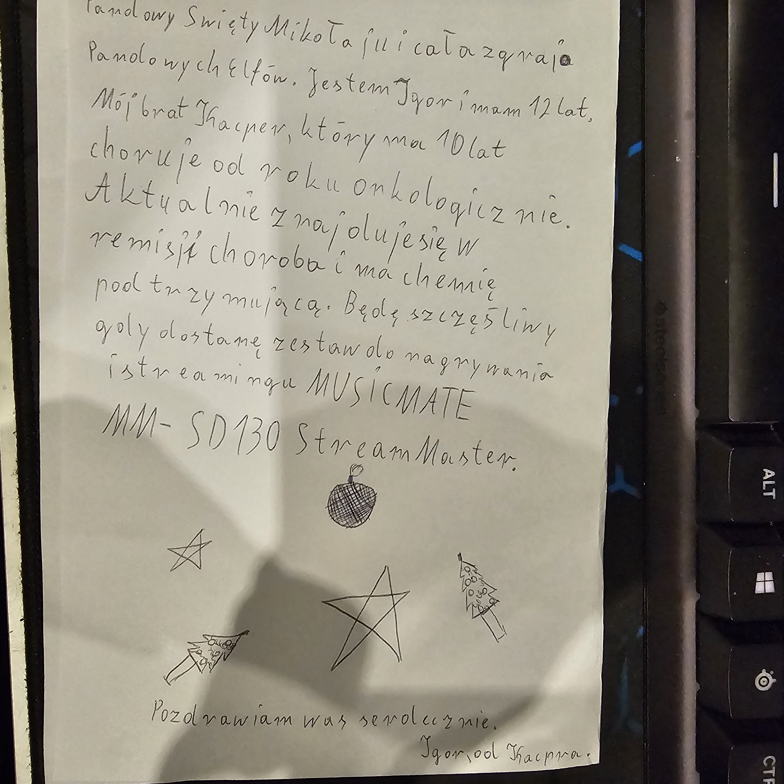 Moj braciszek Kacper od roku walczy z choroba onkologiczna z medulloblastoma i zespołem li-fraumeni. Bardzo go Kocham i gdybym mógł bym się z Nim zamienił. Mamy cudowna rodzinę. Nasz wujo - partner mamy świetnie zastępuje tatę.