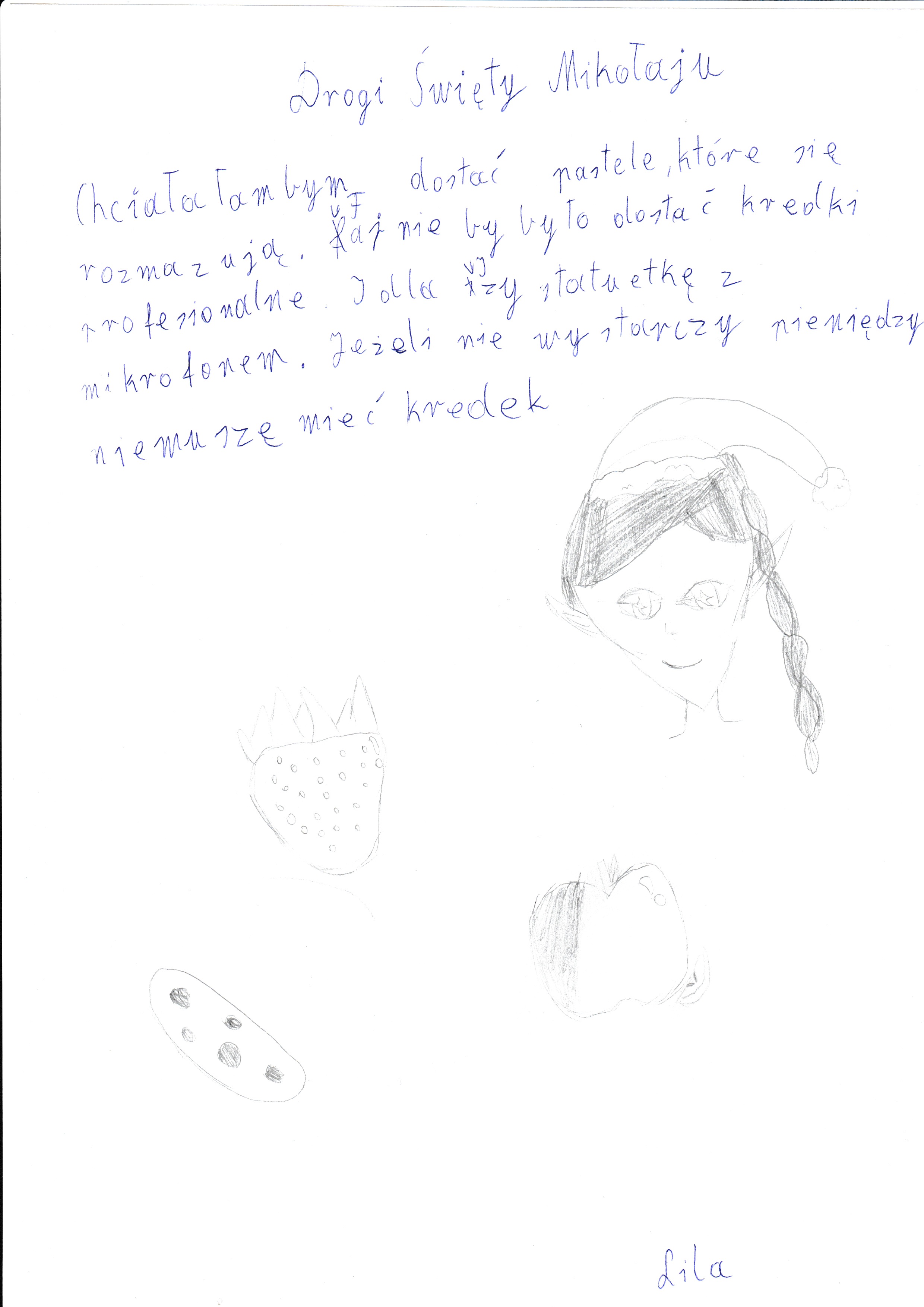- pastele, które się rozmazują - profesjonalne kredki - statuetka - Mikrofon dla siostry, Izy, która kochała śpiewać